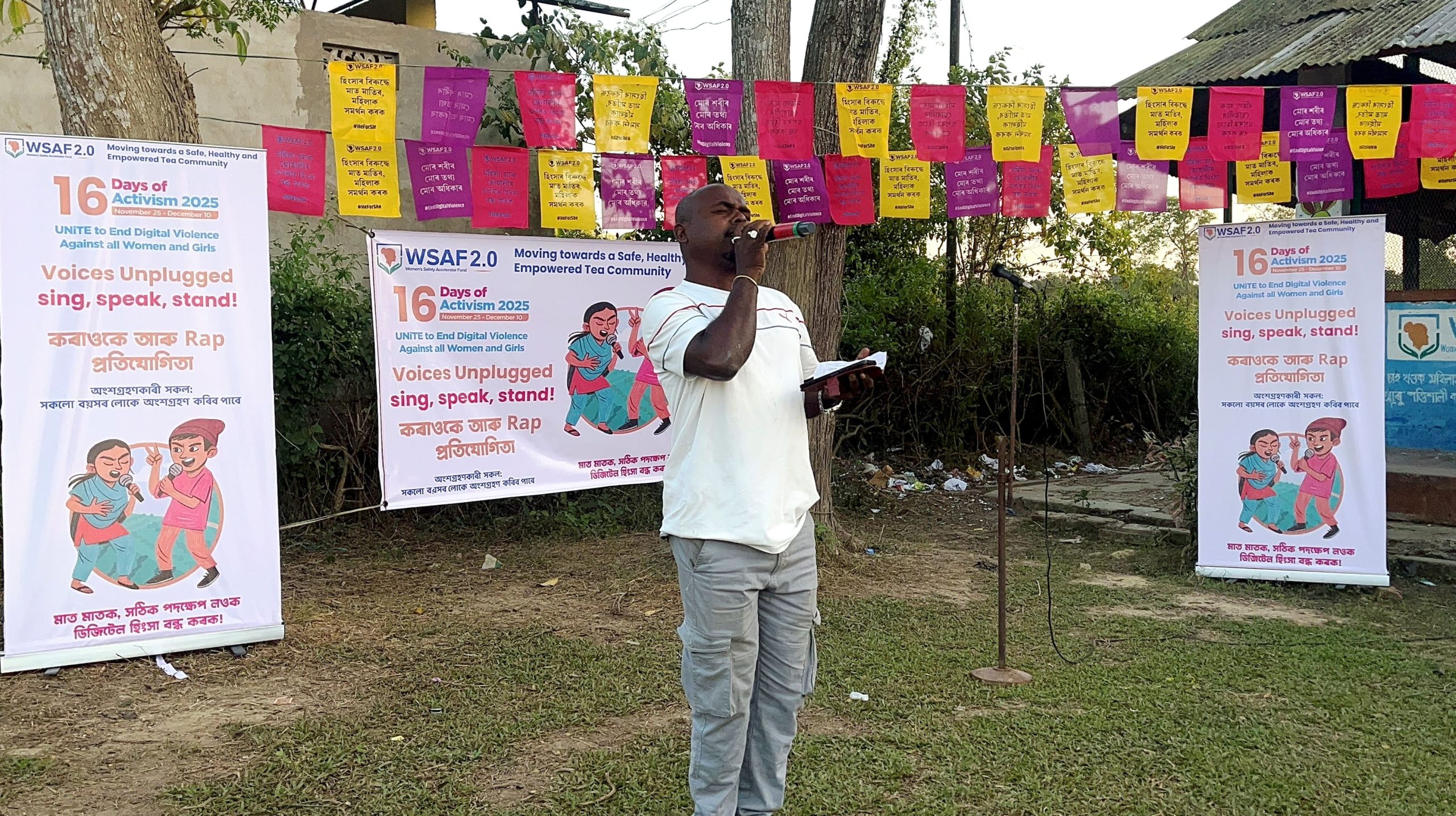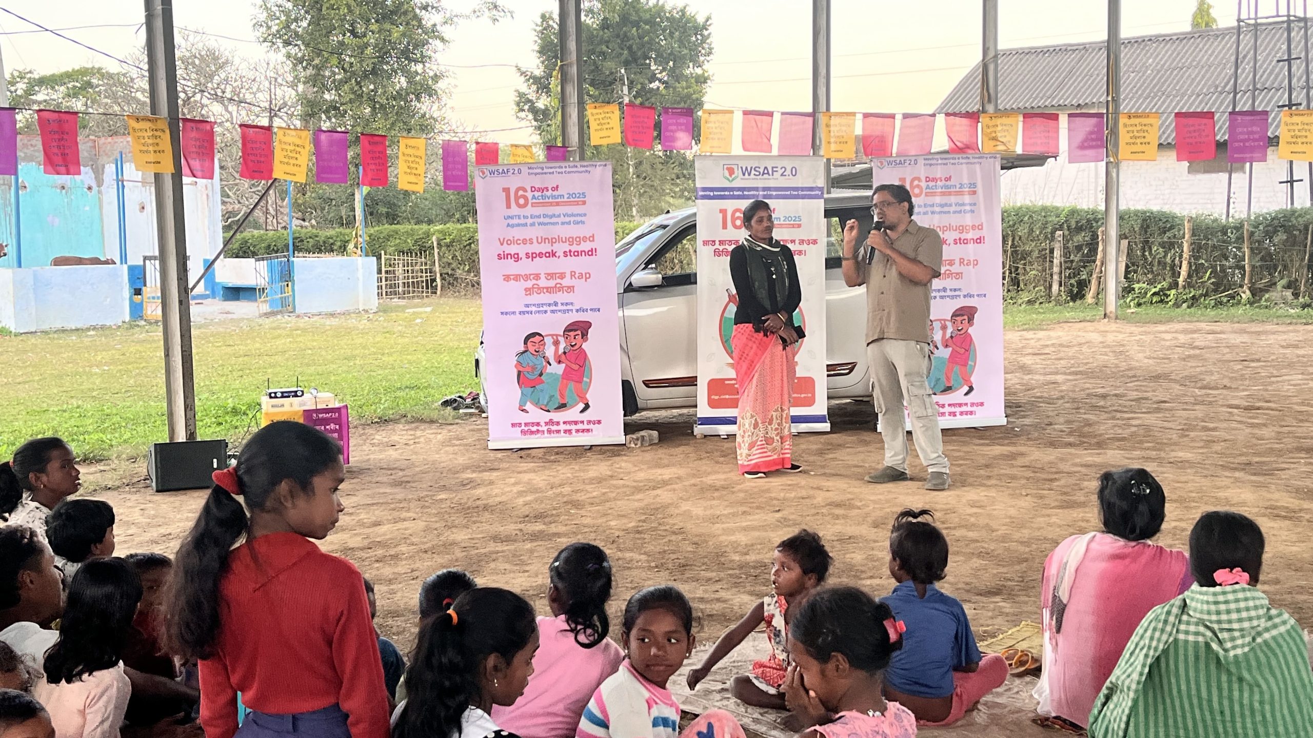 Voices Unplugged: Sing, Speak, Stand! implemented across 11 tea estates in Dibrugarh and Tinsukia districts during the 16 Days of Activism Campaign, 25th November – 10th December 2025. This karaoke-based youth engagement initiative demonstrated how creative, community-rooted approaches can meaningfully advance gender equality, dignity, and rights. This programme offers a powerful example of how arts-based interventions can convert awareness into action.